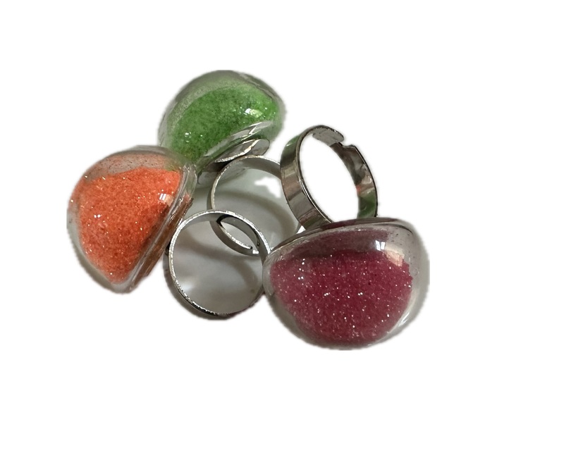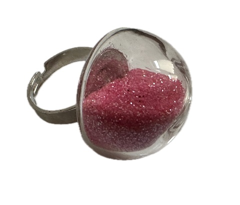 Rõnga suurust saab reguleerida. Seest liikuv mereliiv koos eri värvi glitteritega. Ornamendi läbimõõt 28 mm