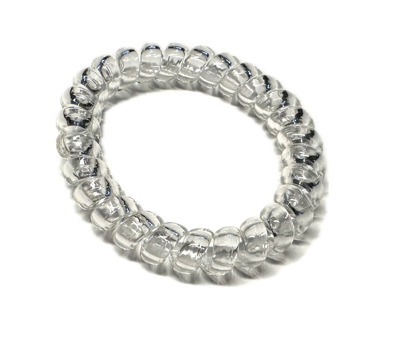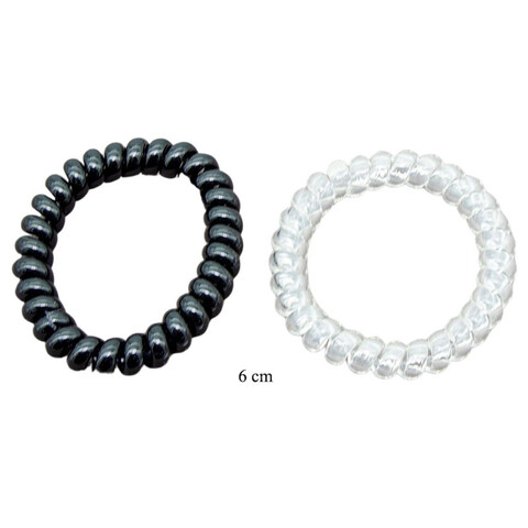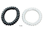 Plastikust juukselõngad. Läbimõõt 5,5 cm, laius 0,9 cm. 2 värvi: must ja läbipaistev valge.
