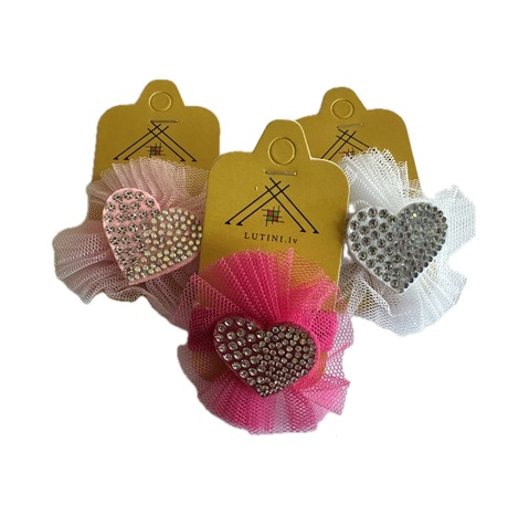 Õrnalt veniv juuksekumm kangast ja kristallidega kaunistatud 5x5 cm. Laius 6 mm, läbimõõt 4 cm.