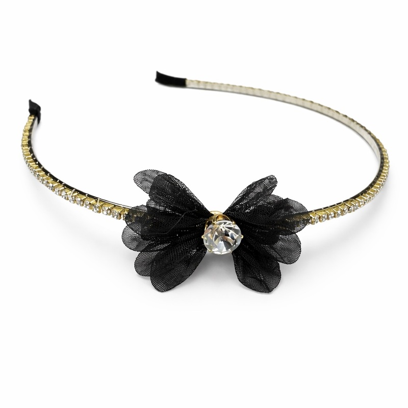 Materjal: metall, laius 0,3 cm, kaetud sädelevate kividega, kapronkangast kaunistus 2x3,5 cm.