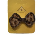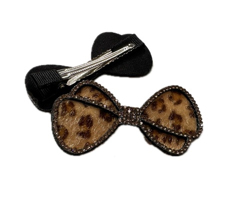 Metallist juuksenõel säravate paelade ja tekstiiliga, suurus 7,5x4 cm. Kaks värvi: pruun ja hall leopardimustriga.