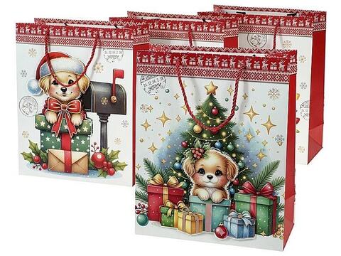 Paksust paberist kinkekott glitteri ja aplikatsioonidega.