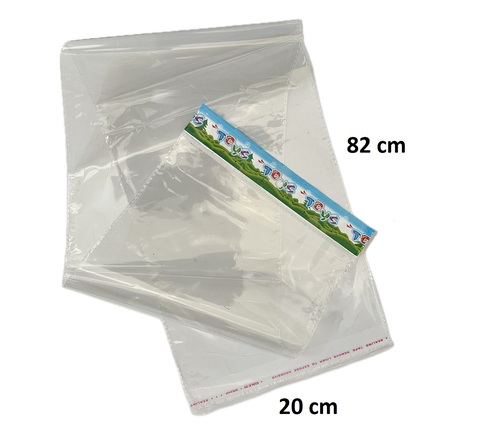 Läbipaistev polüpropüleenist kott. Isekleepuv riba rebitava kleeplindiga. Mõõtmed 200 x 820 mm