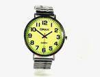 OMAX käekell painduva metallkäevõrulehega hõbedane käekell. Heleroheline-kollane numbrileht 38 mm. Suured numbrid.