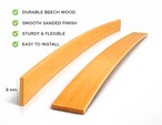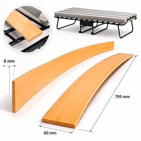Lamellide pikkus 795mm, laius 60mm, paksus 8 mm.Lisavoodi jaoks mõeldud puidust varuliistud;