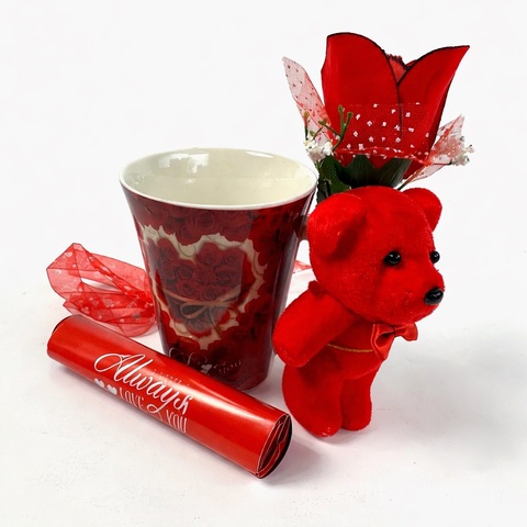 Kinkekomplektis kruus koos tarvikutega. Suurus 18 x 13 x 10,5 cm.