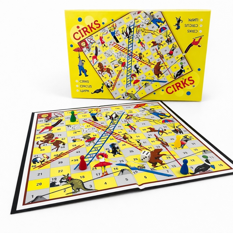 Tsirkus karbis lauamäng Klassikaline lauamäng kogu perele. Püüa lõpetada esimesena! Mäng arendab mälu, loogilist mõtlemist ja matemaatilisi oskusi. Valmistatud Lätis Mänguala suurus: 33 x 34 cm. Sisaldab mänguala, 4 täringut ja 1 täringut.