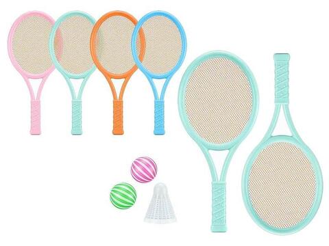 Suurus: 48 x 22 x 3 cm. Materjal: plastik ja võrk. 2 reketit, plastikpall 4,5 cm läbimõõduga ja 8 cm frill.
