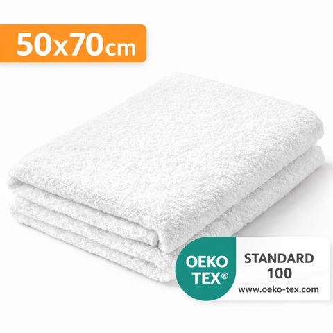 Suurus: 50x70 cm 100% puuvill 400 g m2 Valged froteerätikud hotellidele, spaadele, veekeskustele, spordiklubidele ja ilusalongidele. 100% puuvillased froteerätikud imavad hästi vett ja kuivavad kiiresti. Meie rätikuid on testitud suurtes hotellipesulates ja need sobivad professionaalseks hoolduseks. Rätikud on mustrita ja ilma dekoratiivse ribata, mis takistab servade lainetust, tagab lihtsa voltimise ja sujuva käsitsemise pesulas. Nõuetekohase hoolduse korral kestavad rätikud aastaid ja säilitavad oma omadused ka tihedas kasutuses. Soovi korral saame tikkida logo. Igal rätikul on sisseõmmeldud riputusklamber. Tugevdatud õmblused: topeltõmblus mõlemal pikemal serval. FAST-DRY: mõeldud kiireks kuivatamiseks. LINT CONTROL: vabastab oluliselt vähem linte kui tavaline froteerätik. MINIMAALNE PAKENDUS: kasutame võimalikult vähe pakkematerjali, säästame ressursse ja keskkonda. Kõik rätikud on loodud majutuskohtade vajadusi silmas pidades ja vastavad OEKO-TEX® STANDARD 100 nõuetele.