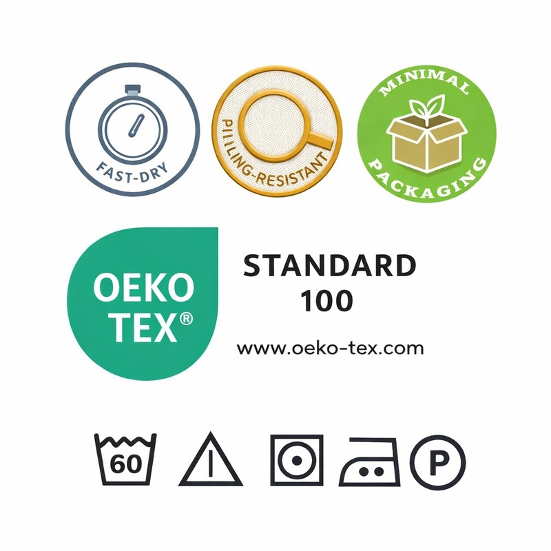 * Kõik tooted vastavad OEKO-TEX 100 standardile. * Voodipesu saab lisateenusena märgistada spetsiaalse pesumärgisega. Täiendavat teavet leiate artikli koodilt VP343