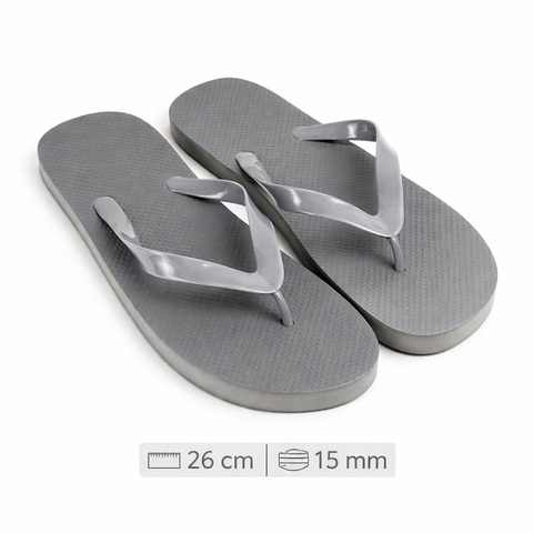 Veekindel tald 15 mm paksune, tossud hallid. Pikkus 26cm. Iga paar sussid on pakitud eraldi kilekotti.