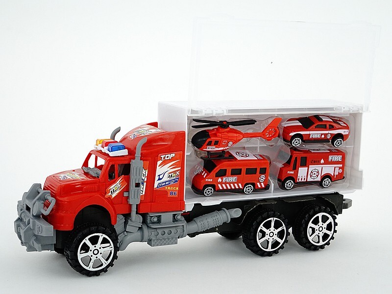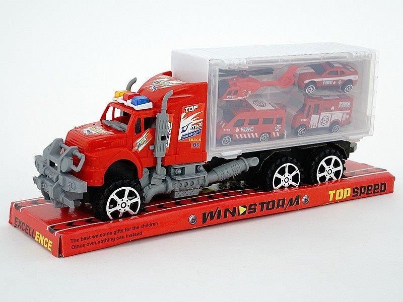 Material plastic, 4 firefighting vehicles in the package. Package dimensions 34 x 15 x 10 cm.