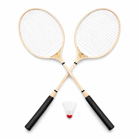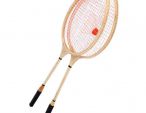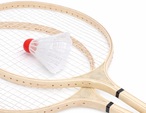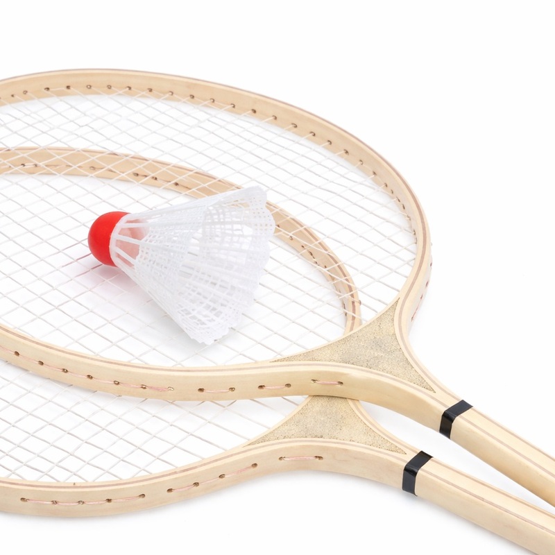 Two rackets in a set with a ruffle. Material: wood, racket dimensions: 29 x 16 x 2 cm.
