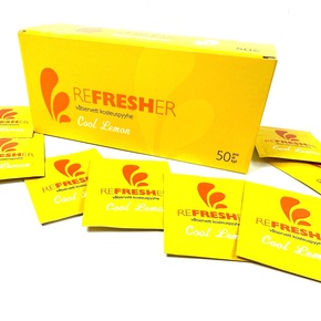 Refresher tissue in sachet