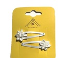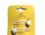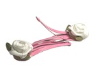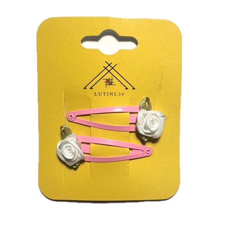 Koko 5 cm. Valkoiset solki-soljet, joissa satiinikangaskoristeena kukka tai rusetti. Koko 2 cm tai 2,5x3,5. Hinta 2 kpl.