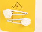 Metallisolki, pituus 5 cm, satiinikangas ruusukoriste 2 cm. Hinta 2 kpl.