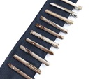 Kultaa ja hopeaa ja erilaisia koristeita Pituus 5,5 cm ja 6 cm. Muotoilu voi vaihdella kuvasta