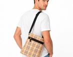 Koko 21 x 24 cm. Koostuu 3 osasta Jokaisessa osassa on vetoketju. Säädettävä vyö. Magneettinapit. Nahkajäljitelmä
