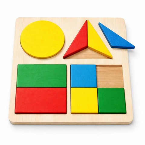 Mosaiikki 10 värillisestä puupalikasta geometriseen oppimiseen.Koko 15x15x0.8 cm.