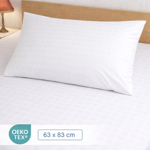 * Tyynyliina 63x83 cm. * Tyynynpäällinen, jossa tasku. * Tyynyliina on valmistettu hotellin tarpeet huomioon ottaen. Se on kestävä ja laadukas. Olemme testanneet tyynyliinoja suurissa hotellien pesuloissa ja materiaali soveltuu teollisuuspesuun. * Tyynynpäällisen mitat on sovitettu hotellityynyjen standardimittoihin ottaen huomioon kutistuminen pesun aikana. * Satiininen vuodevaatteiden väri: valkoinen * Kuvio: kudottu jacquard (damasti), ei painettu; sävy sävyyn, hienoja raitoja ja hienovarainen ruutu, matta-kiiltävä efekti antaa eksklusiivisuutta. * Etu: kudottu kuvio säilyy tiheän pesun jälkeenkin; kuvio ei kulu. * Kangasparametrit: TC 400 - 60×80 - 130 g/m² - 100 % puuvillaa. * Kutistuminen pesussa: n. 5 % pituudessa pitkäaikaisessa käytössä (riippuen pesussa käytettävistä koneista ja lämpötiloista). Kutistuminen leveyssuunnassa n. 1 %. * Vuodevaatteet myydään yksitellen ja asiakas voi koota omat sarjansa (asiakas voi yhdistellä eri värejä, materiaaleja, malleja jne. valikoimastamme). * Kaikki tuotteet myydään yhtenä kappaleena ja asiakas voi valita kullekin tuotteelle juuri sen määrän, jonka hän tarvitsee. * Kaikki vuodevaatteet kestävät vuosien pesun suurissa teollisuuspesuloissa. MINIMAALINEN PAKKAUS: käytämme mahdollisimman vähän pakkausmateriaalia resurssien ja ympäristön säästämiseksi. Kaikki vuodevaatteet on suunniteltu ja valmistettu hotellien ja muiden majoitusliikkeiden tarpeita silmällä pitäen, ja ne täyttävät OEKO-TEX® STANDARD 100 -standardin vaatimukset.