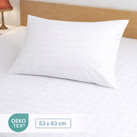* Tyynyliina 53x63 cm. * Tyynynpäällinen, jossa tasku. * Tyynyliina on valmistettu hotellien tarpeet huomioon ottaen. Se on kestävä ja laadukas. Olemme testanneet tyynyliinoja suurissa hotellien pesuloissa ja materiaali soveltuu teollisuuspesuun. * Tyynynpäällisen mitat on sovitettu hotellityynyjen standardimittoihin ottaen huomioon kutistuminen pesun aikana. * Satiininen vuodevaatteiden väri: valkoinen * Kuvio: kudottu jacquard (damasti), ei painettu; sävy sävyyn, hienoja raitoja ja hienovarainen ruutu, matta-kiiltävä efekti antaa eksklusiivisuutta. * Etu: kudottu kuvio säilyy tiheän pesun jälkeenkin; kuvio ei kulu. * Kangasparametrit: TC 400 - 60×80 - 130 g/m² - 100 % puuvillaa. * Kutistuminen pesussa: n. 5 % pituudessa pitkäaikaisessa käytössä (riippuen pesussa käytettävistä koneista ja lämpötiloista). Kutistuminen leveyssuunnassa n. 1 %. * Vuodevaatteet myydään yksitellen ja asiakas voi koota omat sarjansa (asiakas voi yhdistellä eri värejä, materiaaleja, malleja jne. valikoimastamme). * Kaikki tuotteet myydään yhtenä kappaleena ja asiakas voi valita kullekin tuotteelle juuri sen määrän, jonka hän tarvitsee. * Kaikki vuodevaatteet kestävät vuosien pesun suurissa teollisuuspesuloissa. MINIMAALINEN PAKKAUS: käytämme mahdollisimman vähän pakkausmateriaalia resurssien ja ympäristön säästämiseksi. Kaikki vuodevaatteet on suunniteltu ja valmistettu hotellien ja muiden majoitusliikkeiden tarpeita silmällä pitäen, ja ne täyttävät OEKO-TEX® STANDARD 100 -standardin vaatimukset.