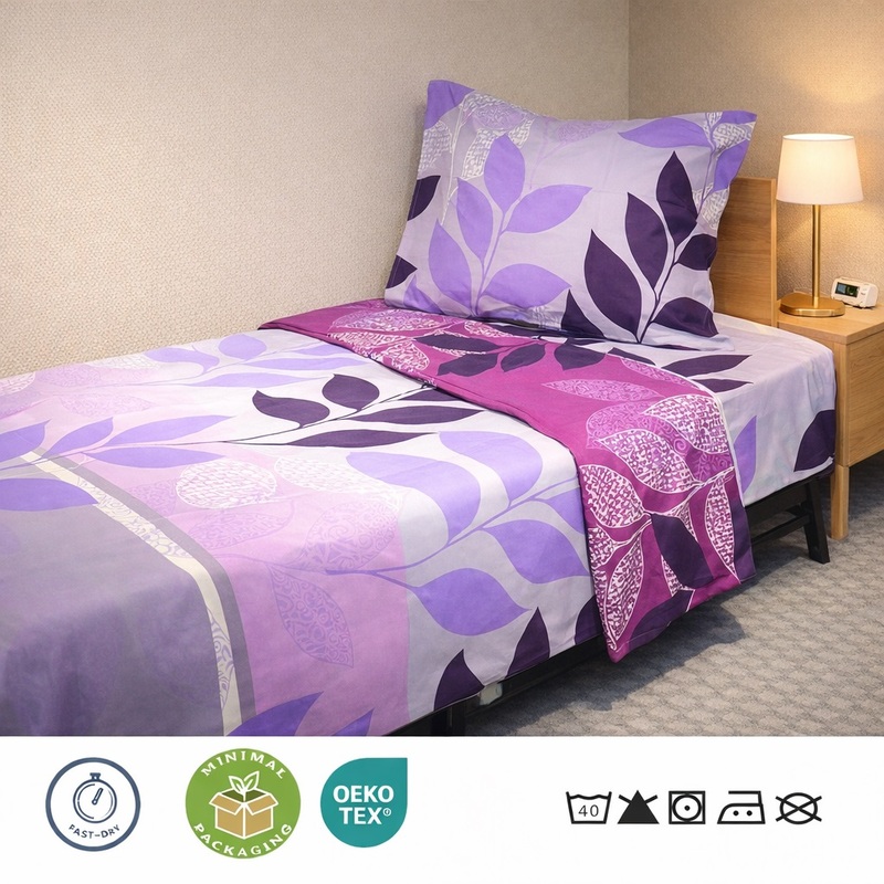 * Vuodevaatteiden väri: kuvio kuten tuotekuvassa * Vuodevaatekangas: TC 130, 68x62/24x24, 130 g/m2, 50% puuvillaa/50% polyesteriä; * Vuodevaatteet kutistuvat noin 10 % pituudestaan pesun ja raskaan käytön aikana (pesukoneesta ja lämpötilasta riippuen). Leveys pienenee noin 5 %; * Kaikki tuotteet täyttävät OEKO-TEX 100 -standardin. * Tyynynpäällinen valmistetaan erityisellä ši huomioiden hotellin tarpeet. Tyynynpäällinen on kestävä. Olemme testanneet tyynynpäällisiä suurissa hotellipesuloissa ja tyynynpäällisen materiaali soveltuu käytettäväksi teollisuuspesuloissa. * Tyynynpäällisen mitat perustuvat hotellityynyjen standardimittoihin ja niissä on otettu huomioon myös tyynynpäällisen kutistuminen pesun aikana.