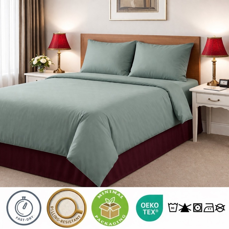 * Käännettävä (voidaan käyttää ylösalaisin). * Alapää on täysin avoin. * Pienet aukot pussilakanan ylä- & scaron-puolella, jotta pussilakana on helppo asettaa pussilakanaan. * Pussilakana on valmistettu hotellien tarpeet mielessä. Pussilakana on kestävä. Olemme testanneet pussilakanoitamme suurissa hotellipesuloissa ja pussilakanan materiaali soveltuu käytettäväksi teollisuuspesuloissa. * Pussilakanan mitat perustuvat hotellien tavallisiin pussilakanakokoihin ja ottavat huomioon pussilakanan kutistumisen pesun aikana. * Pussilakanasetti kutistuu pesun aikana ja kutistumisen jälkeen se sopii myymiimme 200x200 cm pussilakanoihin. * Vuodevaatekangas: TC172, 110x62/35x35, 130 g/m2, 55 % puuvillaa/45 % polyesteriä. * Väri: harmaa * Konepestävä 90 asteessa * Vuodevaatteet kutistuvat noin 10 % pituudestaan pesun ja raskaan käytön aikana (riippuen pesulaitteesta ja lämpötilasta). Leveys pienenee noin 3 %; * Tavalliset harmaat vuodevaatteet voidaan pestä korkeissa vesilämpötiloissa 90 asteeseen asti, eikä vuodevaatteiden väri muutu, joten ne soveltuvat myös sairaaloiden ja hoitokotien vuodevaatteiksi * Kaikki tuotteet ovat OEKO-TEX 100 -standardin mukaisia.