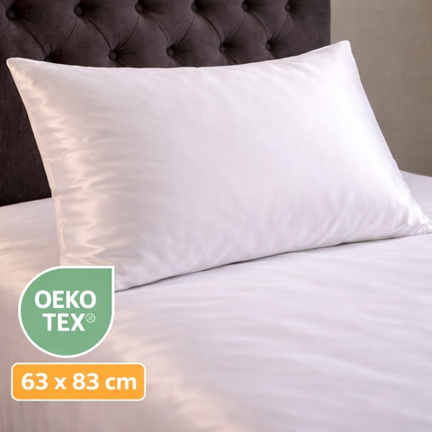 * Tyynyliina 63x83 cm * Tyynynpäällinen, jossa tasku * Ilman kuviota / raitoja, satiinimateriaalia * Tyynynpäällinen on suunniteltu hotellien tarpeita ajatellen. Se on kestävä. Olemme testanneet tyynynpäällisiä suurissa hotellien pesuloissa ja materiaali soveltuu teollisuuspesuun. * Tyynyliinan koot perustuvat hotellien standardityynyliinan kokoon ja kutistumiseen pesun jälkeen. * Satiininen vuodevaatteiden väri: valkoinen * Vuodevaatteet ilman kuviota * Satiinikankaan parametrit: TC 300 - 60×60 - 130 g/m² - 100 % puuvillaa. * Kutistuminen pesussa: noin 6 % pitkän käyttöajan kuluessa (riippuen pesussa käytettävistä laitteista ja lämpötiloista). Kutistuminen leveyssuunnassa n. 2 %. * Vuodevaatteet myydään yksitellen ja asiakas voi koota omat sarjansa (asiakas voi yhdistellä eri värejä, materiaaleja, malleja jne. valikoimastamme). * Kaikki tuotteet myydään yhtenä kappaleena ja asiakas voi valita kullekin tuotteelle juuri sen määrän, jonka hän tarvitsee. * Kaikki vuodevaatteet kestävät vuosien pesun suurissa teollisuuspesuloissa. MINIMAALINEN PAKKAUS: käytämme mahdollisimman vähän pakkausmateriaalia resurssien ja ympäristön säästämiseksi. Kaikki vuodevaatteet on suunniteltu ja valmistettu hotellien ja muiden majoitusliikkeiden tarpeita silmällä pitäen, ja ne täyttävät OEKO-TEX® STANDARD 100 -standardin vaatimukset.