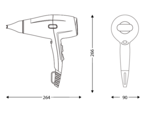 2000 W * 220 & 240 V 50 60Hz * 3 lämpötilatasoa (myös kylmä), 2 ilmavirta-asetusta: 55 ja 85 m3 h * Automaattinen sammutus, kun kuivausrumpu ei ole käsillä * Sähköeristysluokka II, IP20 * Sähköjohdon pituus 2270 mm (kierrejohto) * Mitat:* Ilman sähkökaapelia ja pistoketta * Erittäin pitkä käyttöikä * Valmistettu Ranskassa