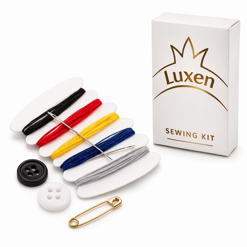 Hotelli-, matkaompelusetti valkoisessa laatikossa