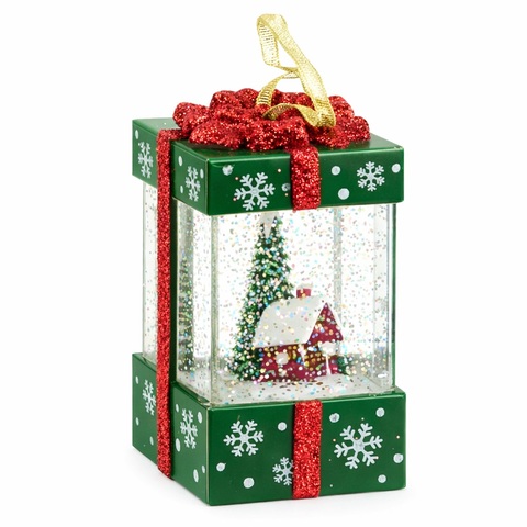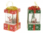 Kabantis kalėdinis dekoras iš stiklo ir metalo su lemputėmis. Reikalingos 3x1,5 V AAA baterijos (į komplektą neįeina). Matmenys 10 x 6 x 6 cm, svoris 337 g.