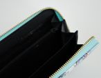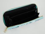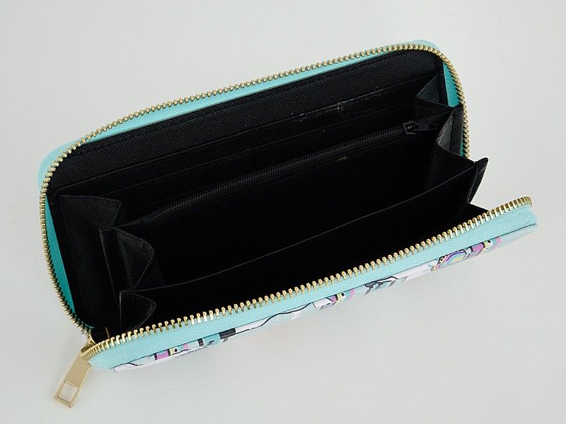 Moteriška piniginė su užtrauktuku. Matmenys: 19 x 10 x 2,5 cm Viršutinė medžiaga: dirbtinė oda. Vidinis pamušalas: dirbtinė oda + tekstilė. 3 skyriai popieriniams pinigams, 1 užtrauktuku užsegamas skyrius monetoms, 10 skyrių kortelėms.