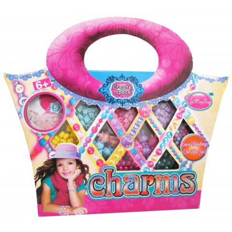 Rinkinys, skirtas specialiems papuošalams, pvz., draugystės apyrankėms, gaminti, jame yra 9 skirtingų tipų plastikinės figūrėlės.Maišelio dydis 30 x 26 cm.