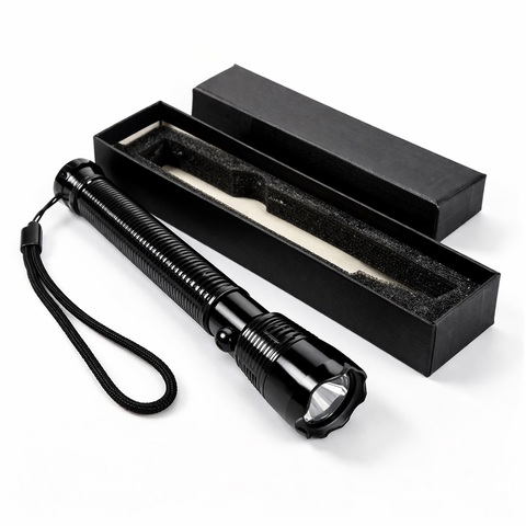 Garums 21 cm.Materiāls metāls. Izmantot baterijas AA 3 gab.(nav iekļautas) Iepakots melnā dāvanu kastītē.Komplektā auduma rokturis