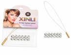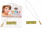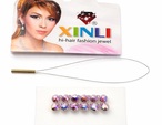 Komplekts sastāv no 12 maziem kristāliņiem, kurus iespējams uzvērt uz cilpas, un metāla stieples (cilpas 7 cm) 1) Izķemmējiet matus un izvēlaties vienu šķipsnu,uz kuras tiks uzlikts dekors. 2) Uzvilkt matu dekoru (kristāliņus) uz cilpas un izvilkt cauri matiem. 3) Novietot matu dekoru šķipsnā