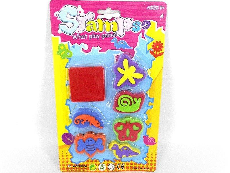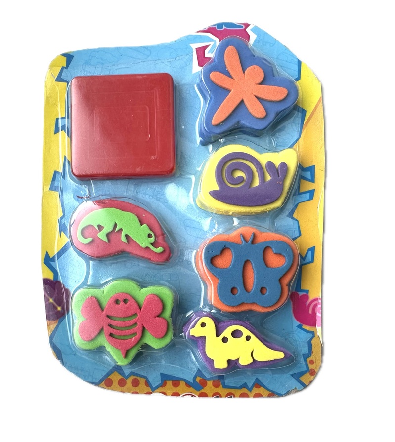 Komplektā 6 zīmogi un zīmoga spilventiņš 5x5 cm krāsošanai.