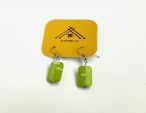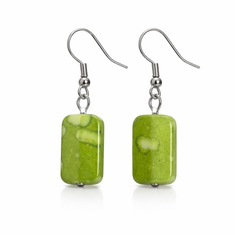 Ieverami auskari bez aizdares, materiāli: balts metāls, maigi zaļa platmasa.