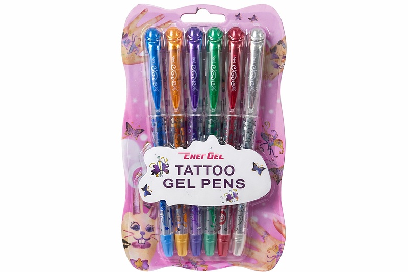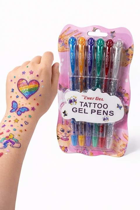 6 krāsu pagaidu tetovējumu gēla flomasteri, ūdensizturīgi, viegli uzklājami un noņemami, nav toksiski. nelietot acu zonā.