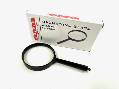 Plastikāta ietvarā. Palielinājums 6 reizes. Diametrs - 60 mm. Kartona iepakojumā