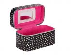 Materiāls plastikāts, oderēts ar audumu, aizverams ar tonētu rāvējslēdzēju. Izmēri 11x18x10.5cm