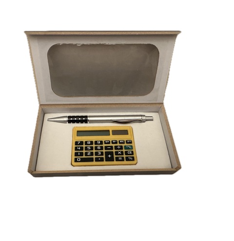 Dāvanu komplektā ietilpst pildspalva un kalkulators. Ideāla dāvana skolniekiem. Iepakota elegantā kartona dāvanu kastītē
