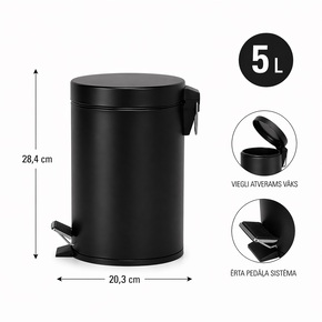 Miskaste ar pedāli 5L, matēta ar spaini