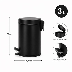 Atkritumu tvertne ar pedāli 3L melna