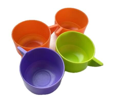 Materiāls plastmasa, iepakojumā 12 elementi - krūzītes un apakštasītes, Iepakojuma izmēri 14 x 11 x 11 cm