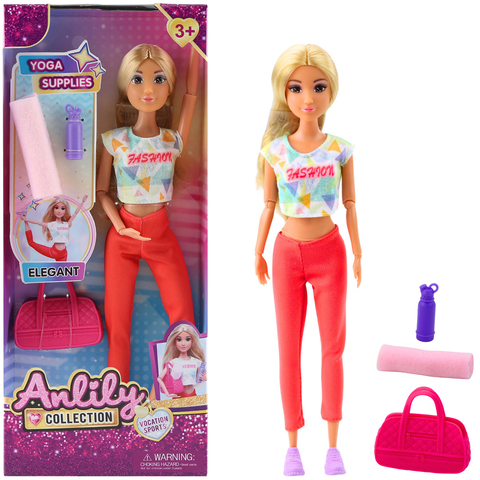Lelle ar jogas nodarbību aksesuāriem. Lelles garums 29 cm