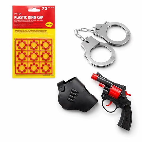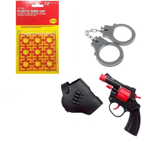 Materiāls plastmasa. Komplektā revolvers ar pistongām, maksts un roku dzelži. Munīcija komplektā 1 gab,