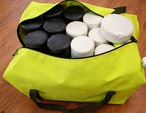 Komplektā 12 gab. melni kauliņi un 12 gab. balti kauliņi. Ražots Latvijā Spēles laukuma izmēri: 3 x 3 m Somas izmērs 300x500x300 mm