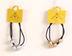 Dubbel hårresår i svart snöre med hjärtdekoration i guld- eller silverpläterad plast. Pris för 1 styck