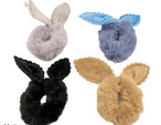 Hårresår i fluffigt tyg med textildekoration i form av hörlurar 7x9 cm, resårstorlek 6 cm. Pris för 1 styck..4 färger.