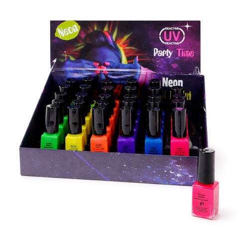 Vattenbaserat leksaksnagellack i 6 neonfärger, 7,5 ml plastflaska. 24 st.